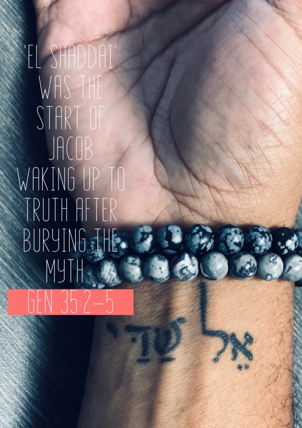 El Shaddai was the name of the God Jacob experientially met, alone and wrestling in the wilderness, instead of the God he’d been born and raised with. “El Shaddai” was the start of Jacob waking up to Truth after burying the myth.